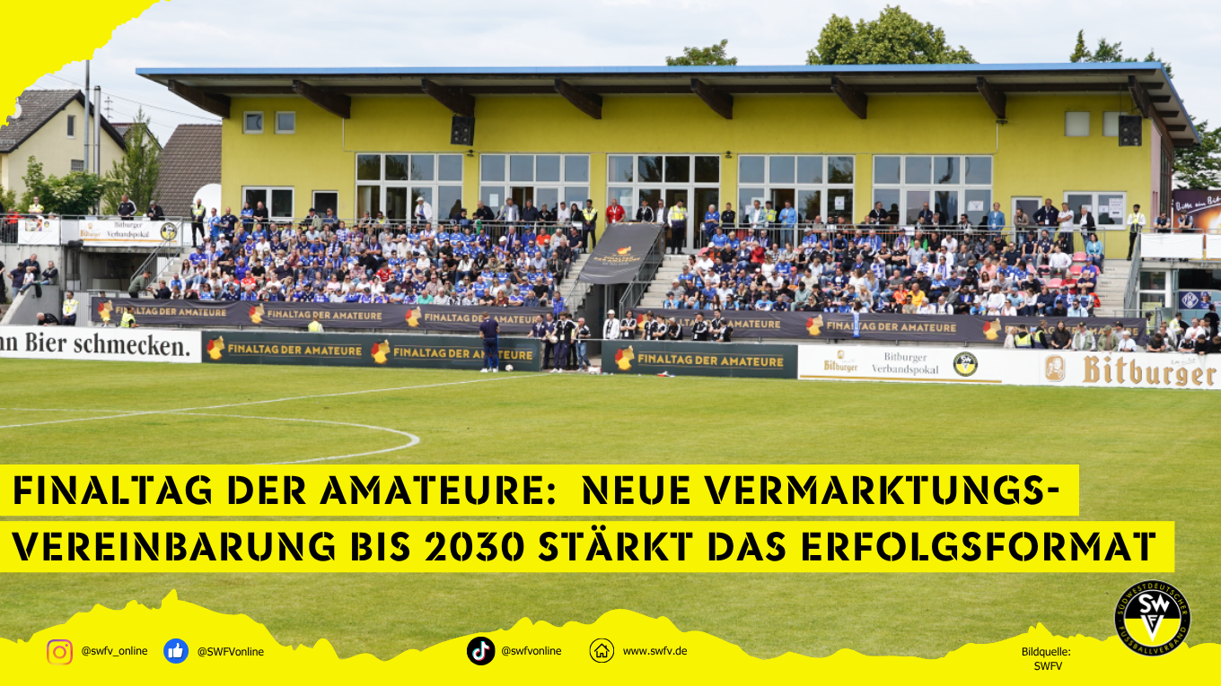 Die Landesverbände des Deutschen Fußball-Bundes haben gemeinsam mit der DFB GmbH & Co. KG und der ARD eine neue vertragliche Grundlage für den Finaltag der Amateure geschaffen. Die neue Vereinbarung sichert die Fortführung des erfolgreichen TV-Formats bis zum Ende der Saison 2029/2030 und eröffnet zugleich neue Möglichkeiten, die Reichweite, Sichtbarkeit und Vermarktungspotenziale des deutschen Amateurfußballs weiter auszubauen.
